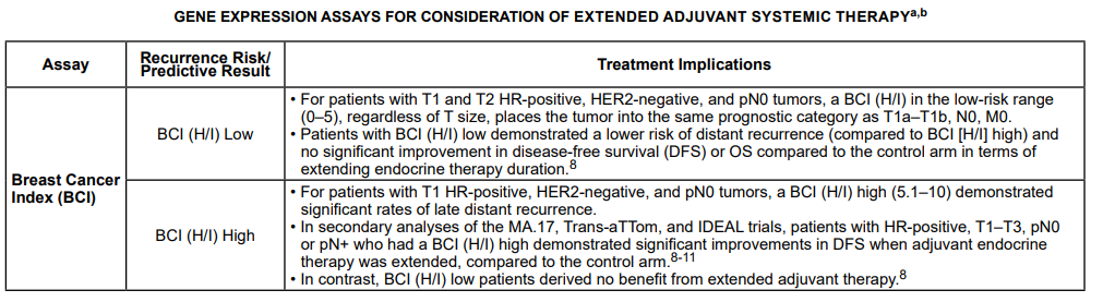 - For individuals who have been diagnosed with T1-T3, HR-positive, HER2-negative breast cancer, use of the Breast Cancer Index (BCI) test to determine the benefit of extended adjuvant endocrine therapy is considered MEDCIALLY NECESSARY.