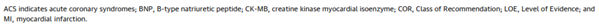 - For individuals presenting with signs and symptoms of acute coronary syndrome (see Note 1), measurement of the following cardiac biomarkers for the diagnosis and/or prognosis of MI is considered NOT MEDICALLY NECESSARY: